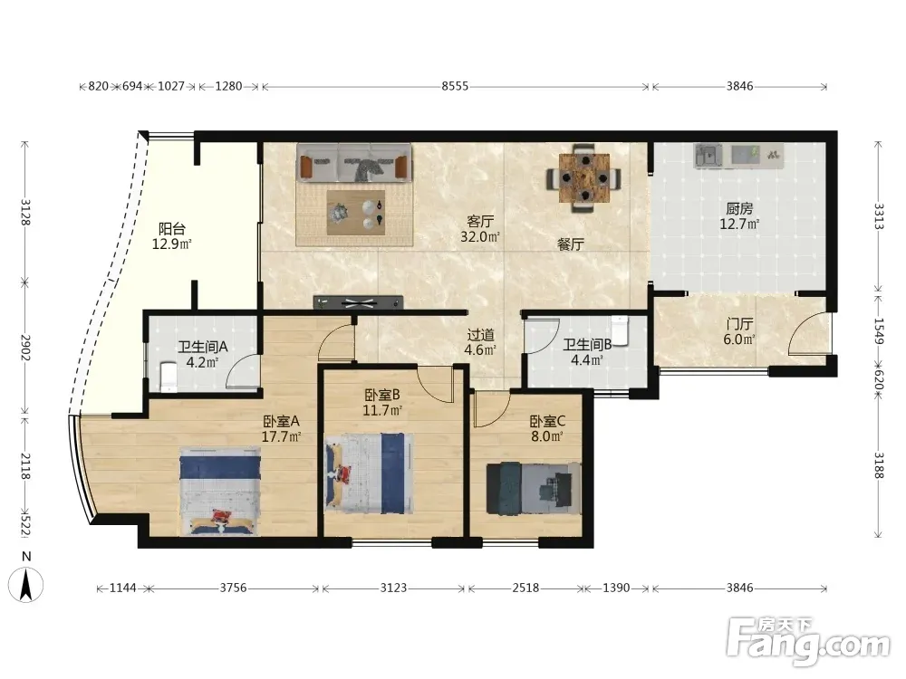 成都玩家 3室1厅 东南