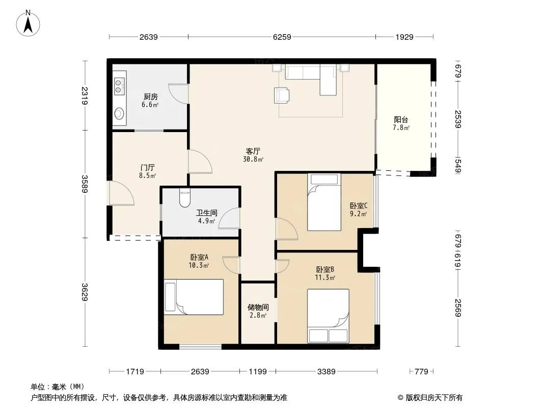 *获取完整户型报告,同时会有免费语音讲解服务
