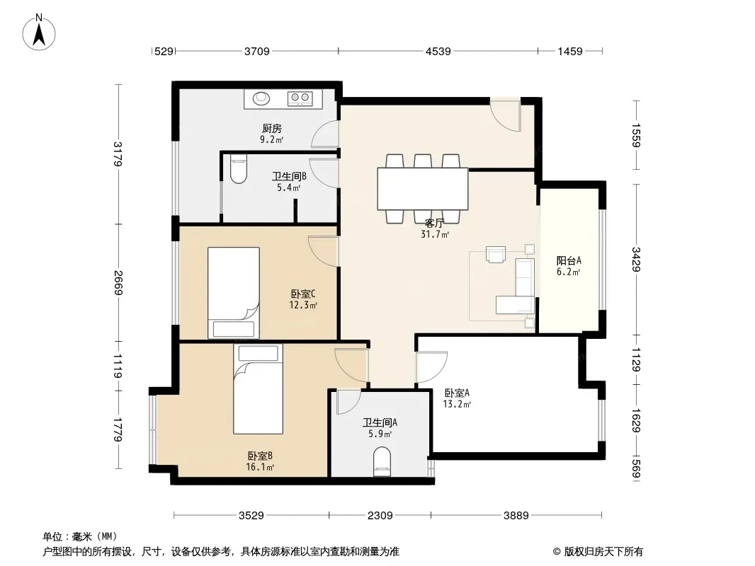 户型齐全,主打户型方正,主卧朝南三居