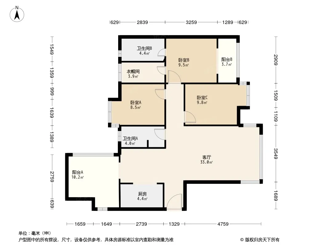 户型齐全,主打带衣帽间,卧室带阳台三居