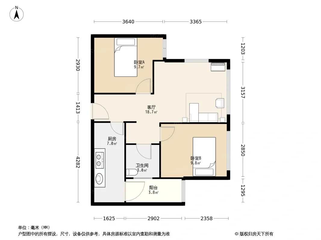 蓝光金双楠一期 2室1厅 北