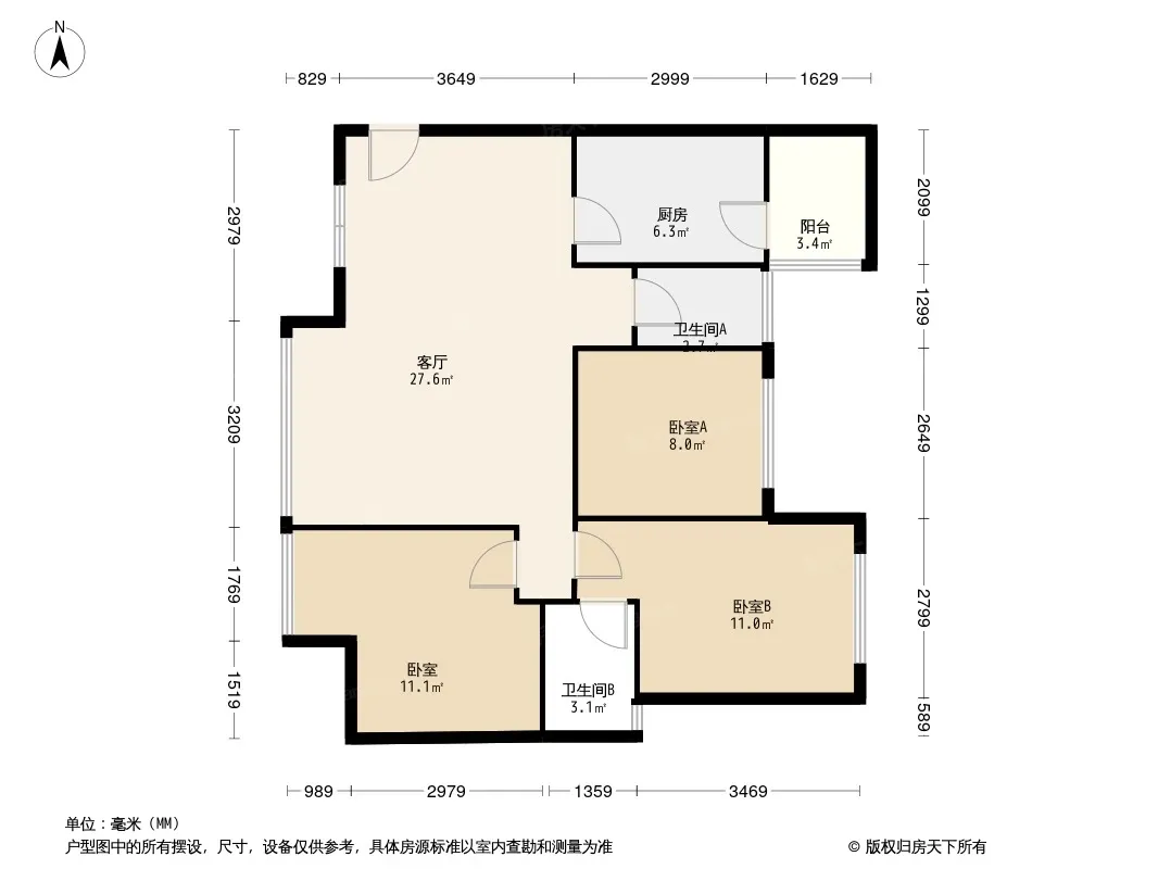 时代悦城 3室1厅 东南