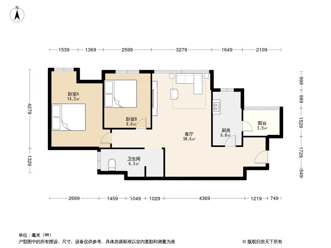 万科金色乐府 2室1厅 南
