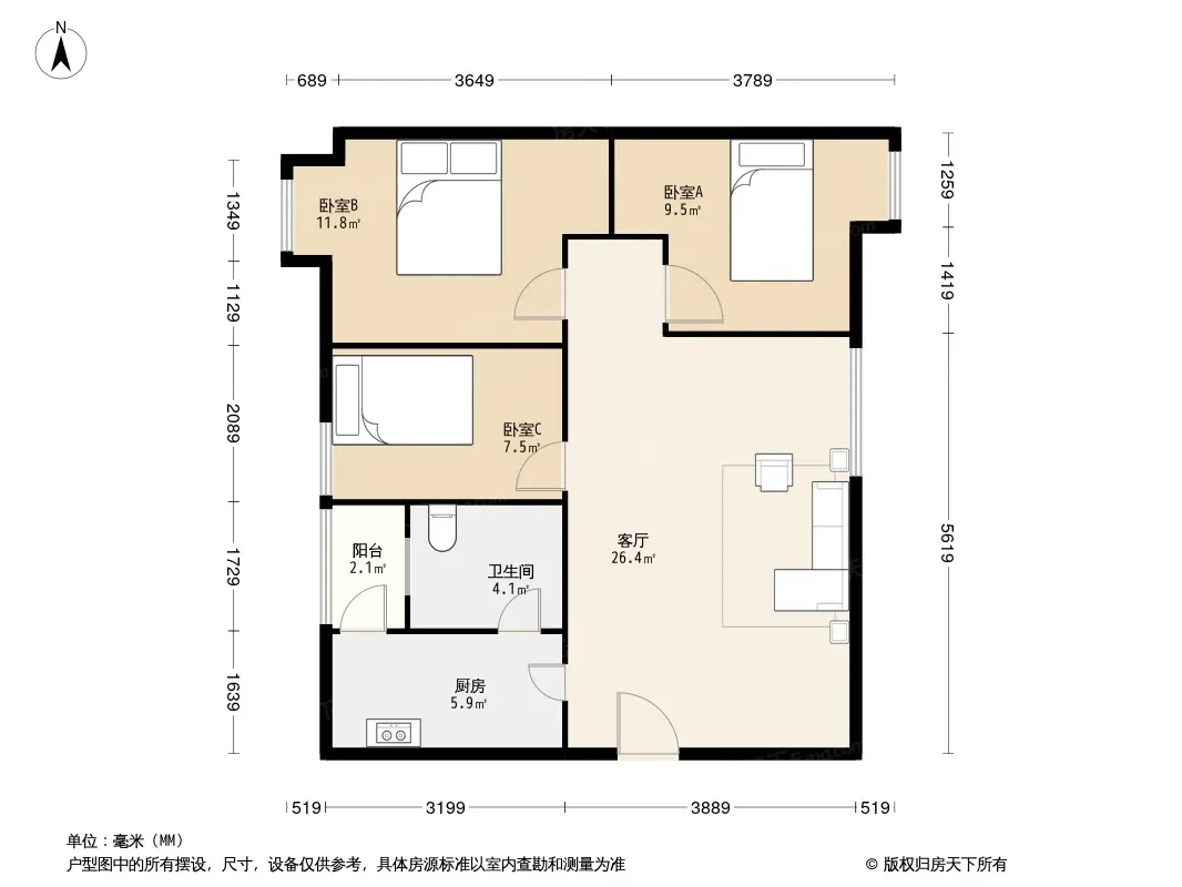 户型齐全,主打户型方正,明卫,客厅朝南三居