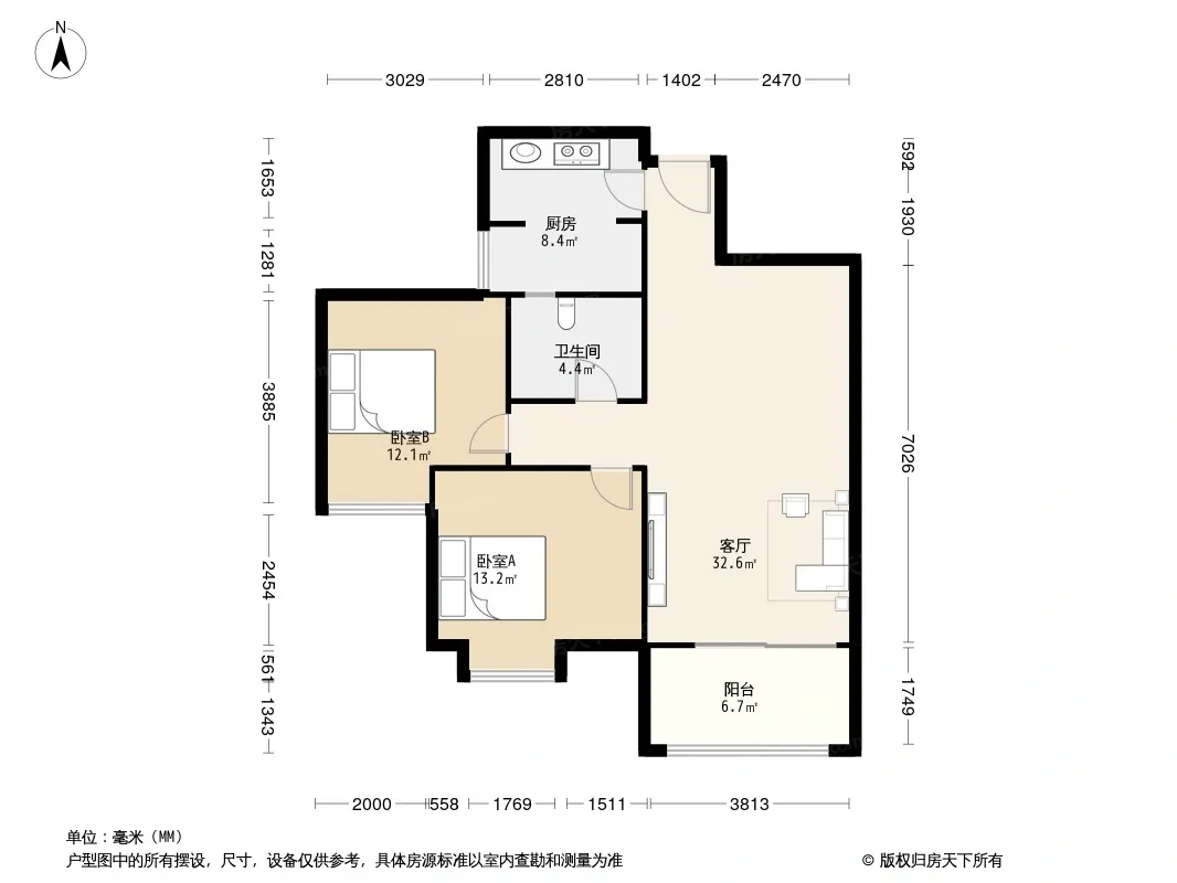户型齐全,主打明厨,双卧朝南,主卧朝南二居