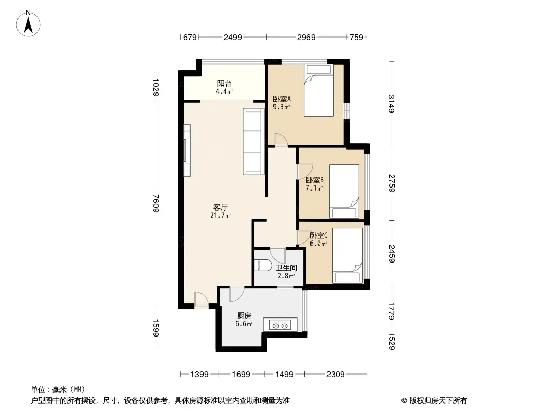 户型齐全,主打全明格局,户型方正三居