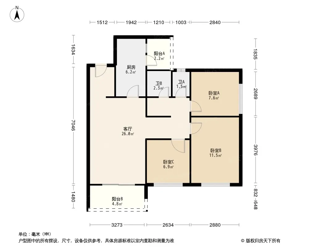 万科金域缇香二期 3室1厅 南