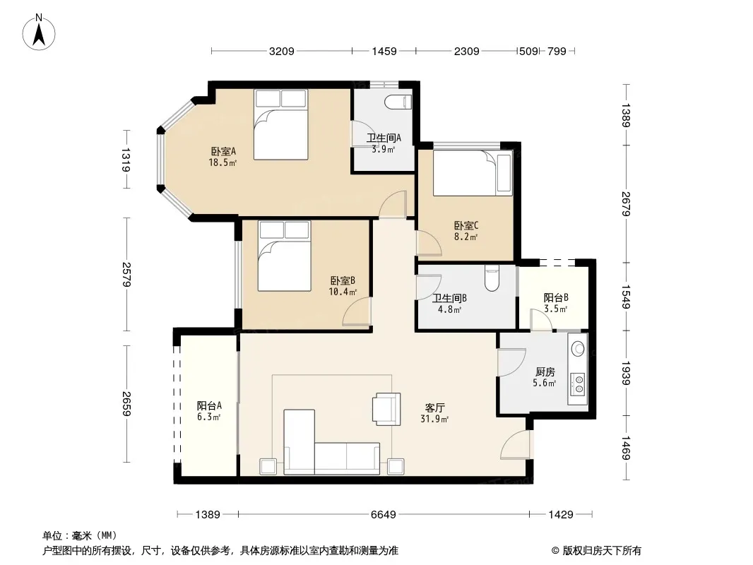 户型齐全,主打明卫,双阳台三居