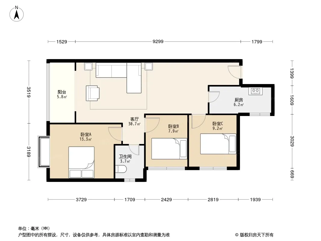 *获取完整户型报告,同时会有免费语音讲解服务