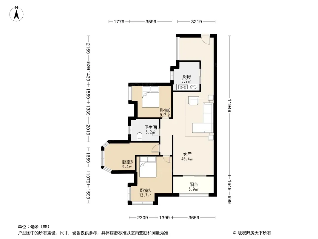 户型齐全,主打明卫,明厨,双阳台三居