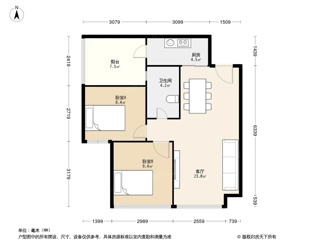 招商依云上城一期 2室2厅 东