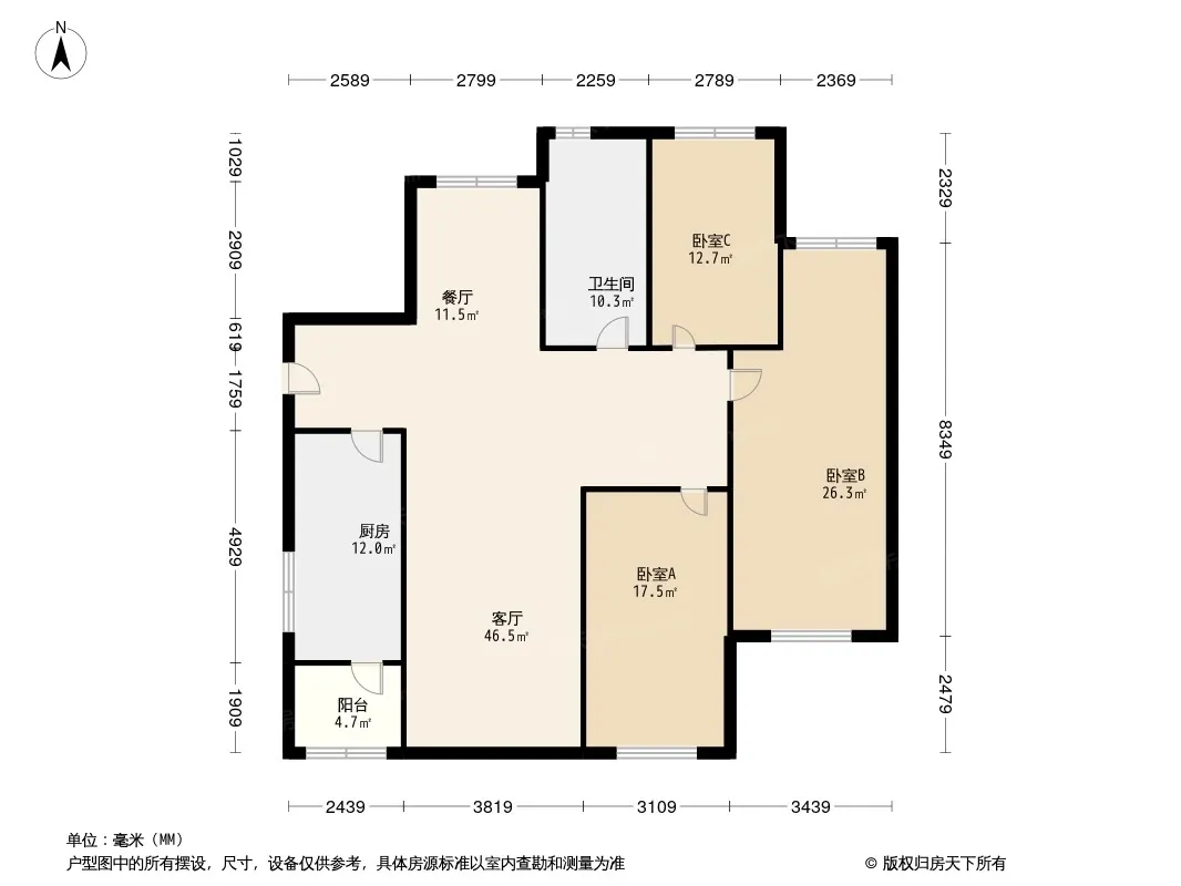 招商依云上城一期 3室2厅 东北