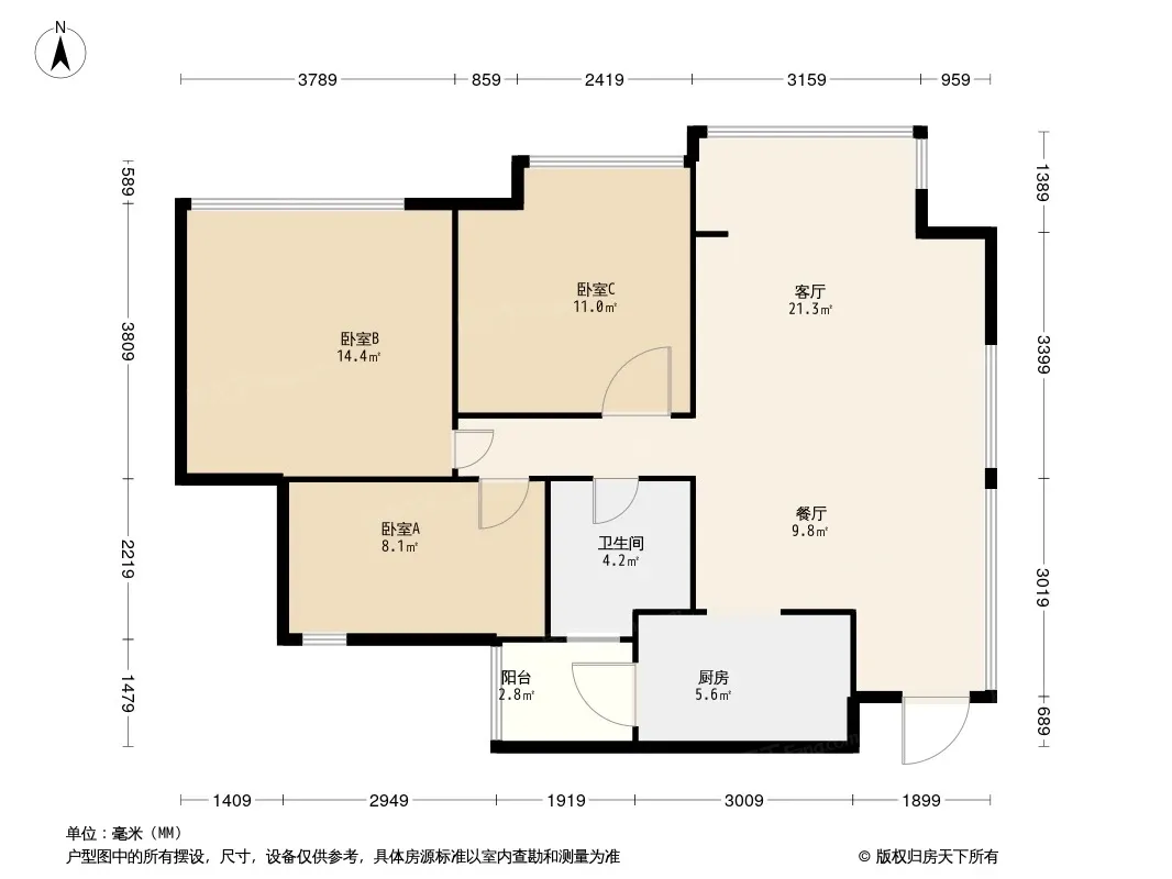 招商依云上城一期 3室1厅 东