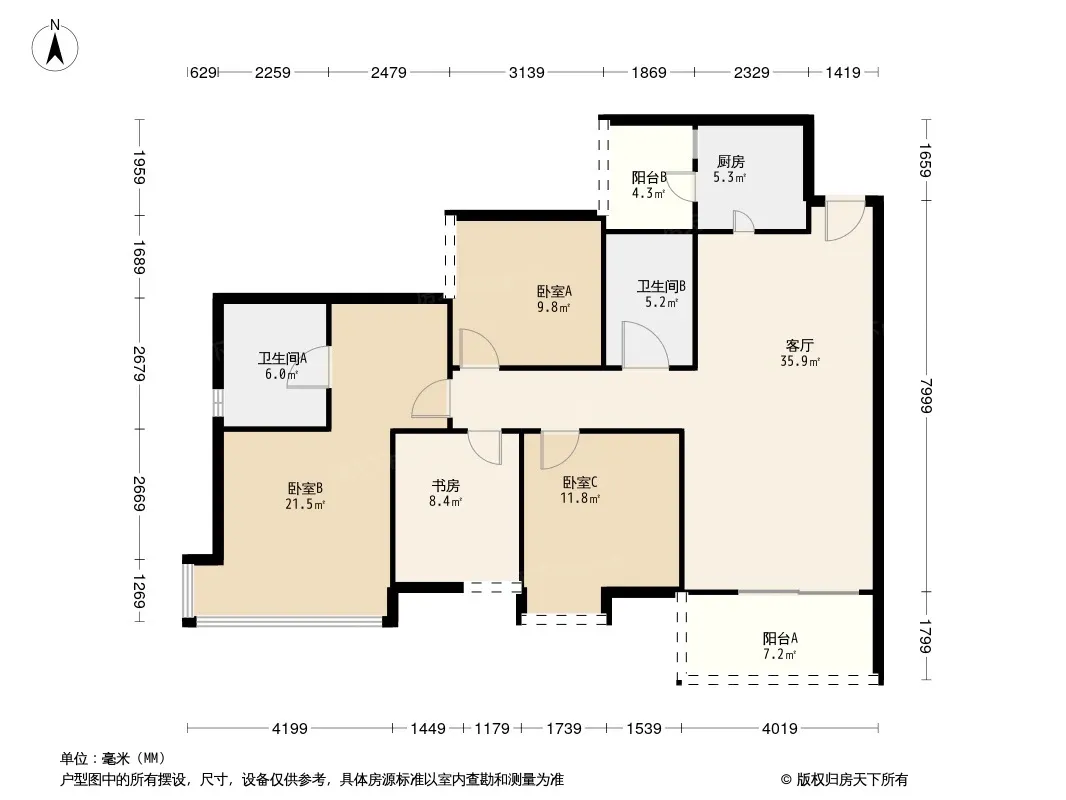 户型齐全,主打全明格局,户型方正三居
