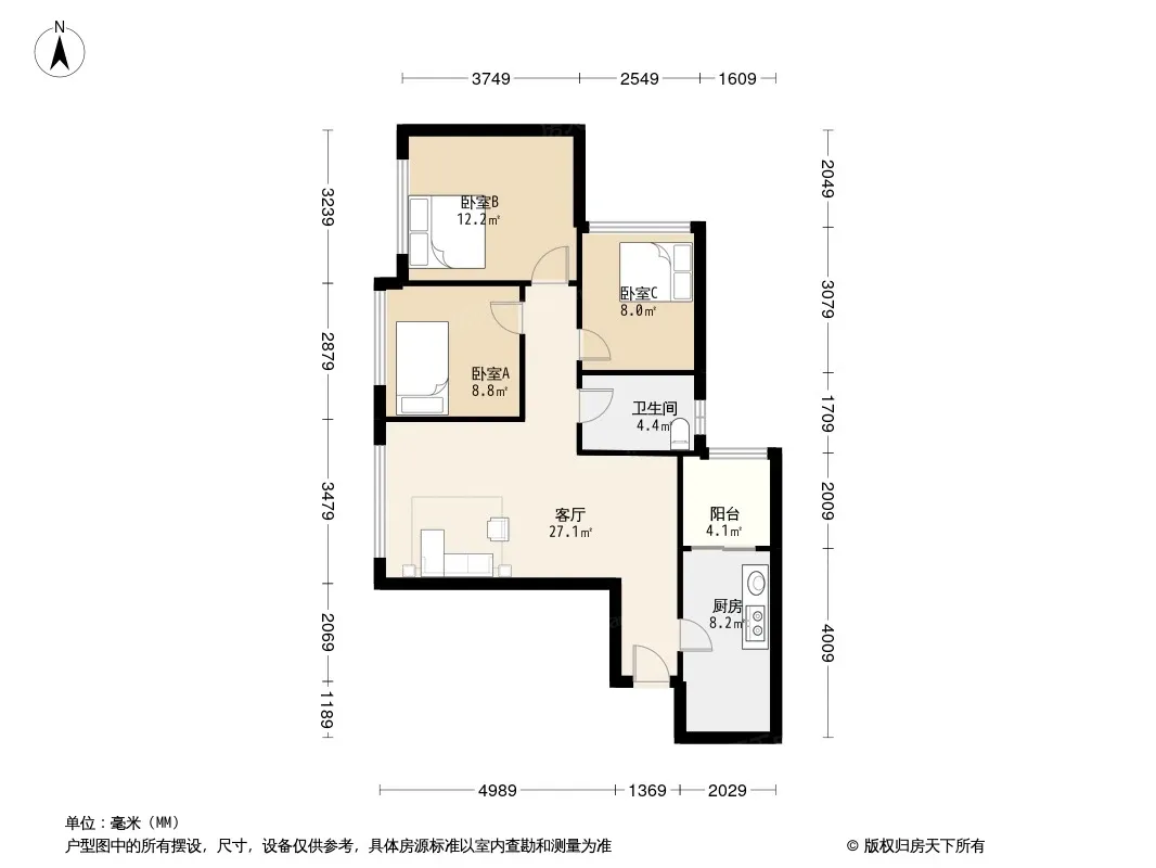 户型齐全,主打户型方正,明卫,客厅朝南,双卧朝南,主卧朝南三居