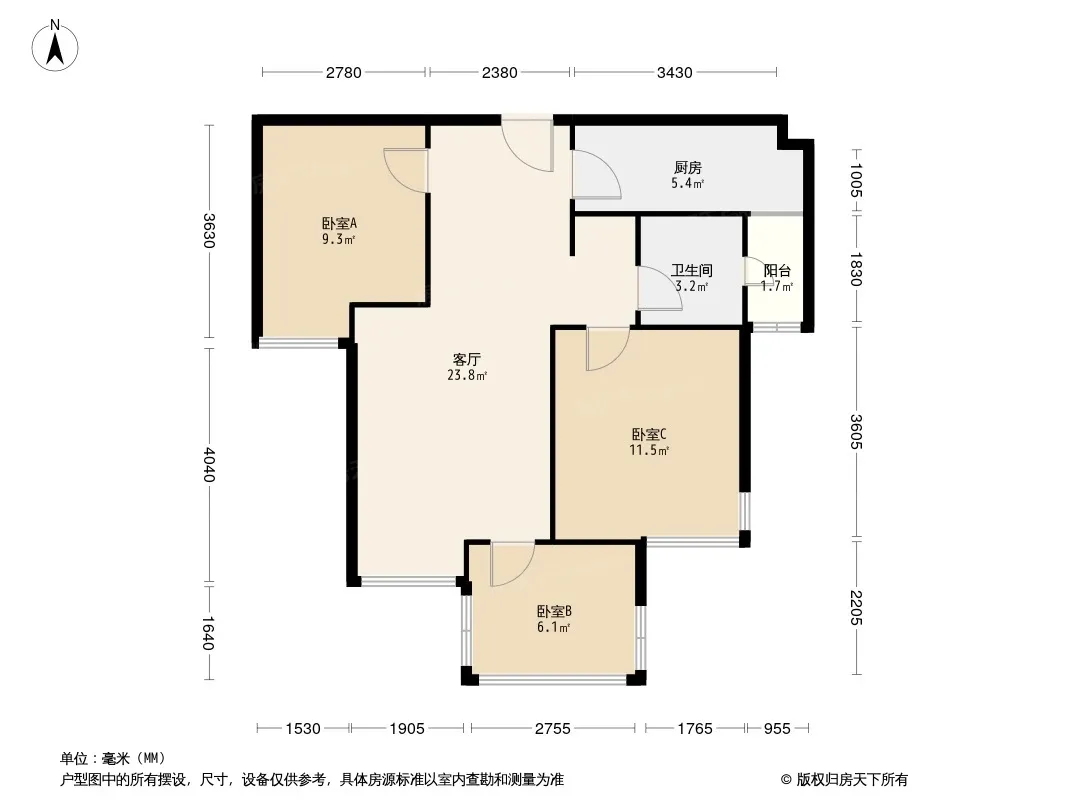缤纷年华 3室1厅 西北