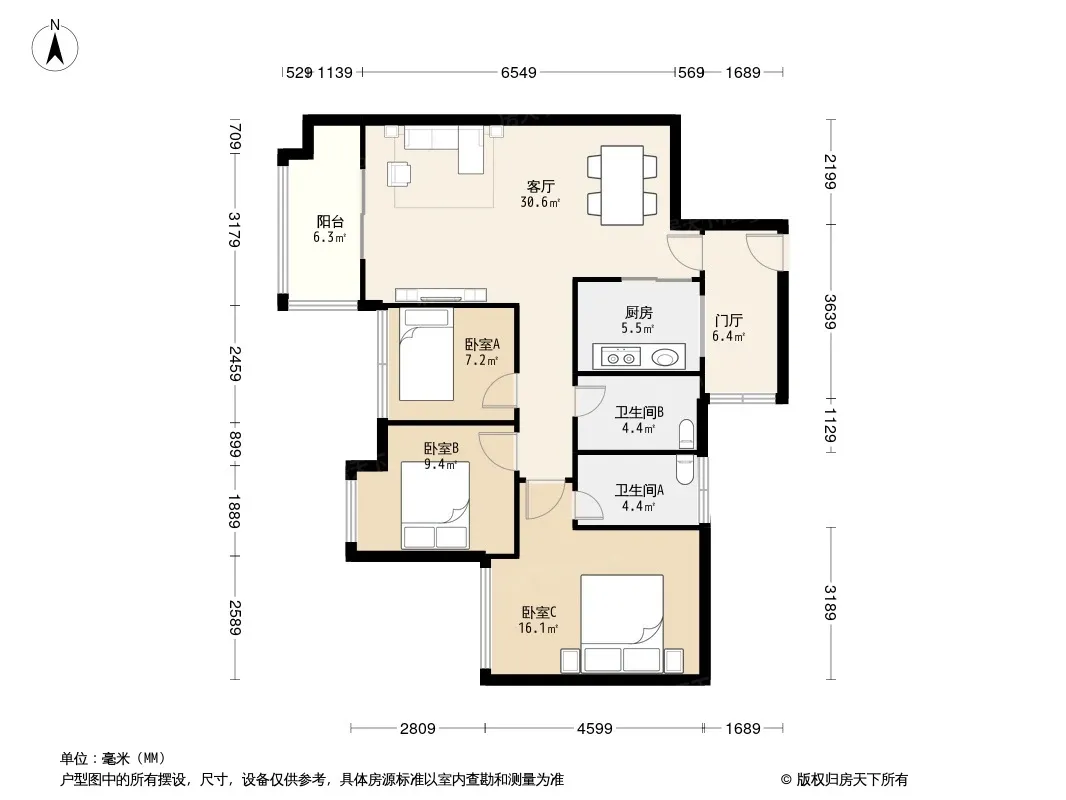 户型齐全,主打户型方正,明卫三居