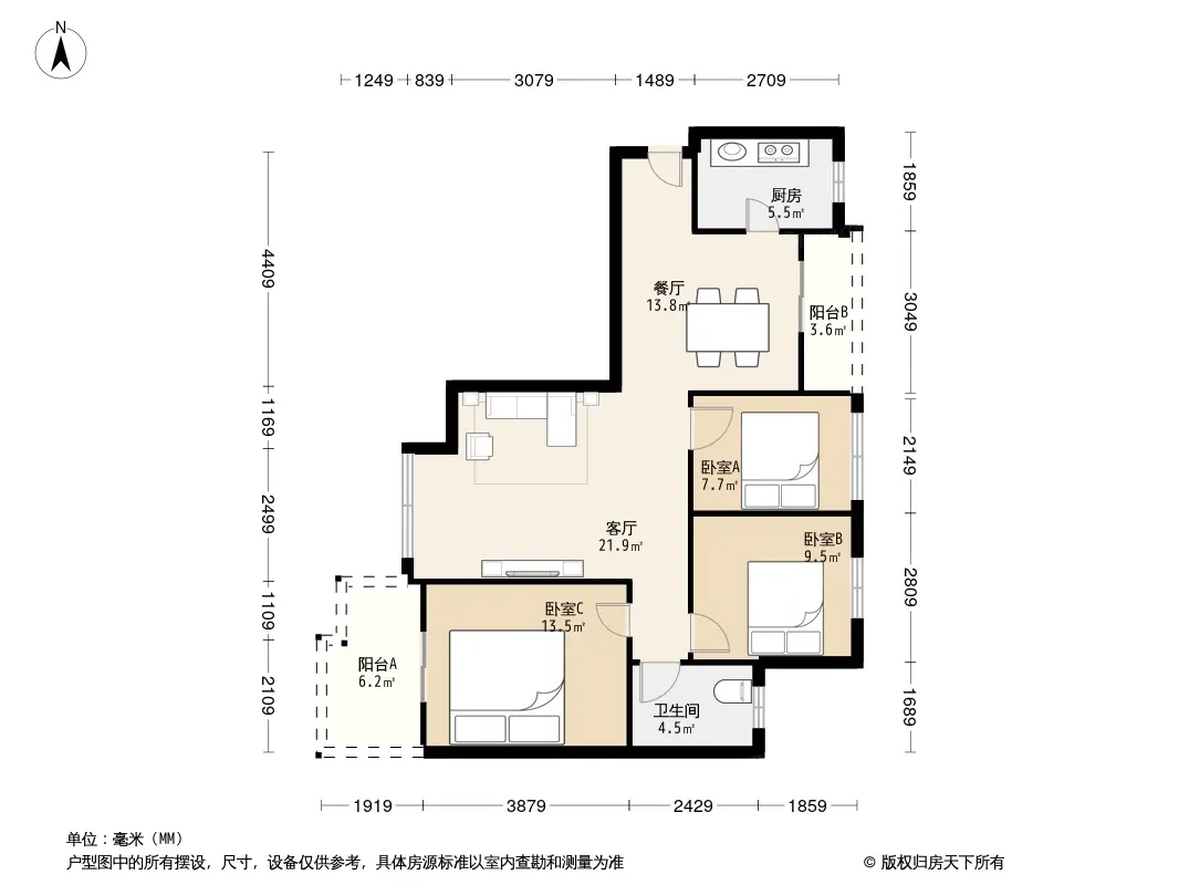 户型齐全,主打户型方正,明卫三居
