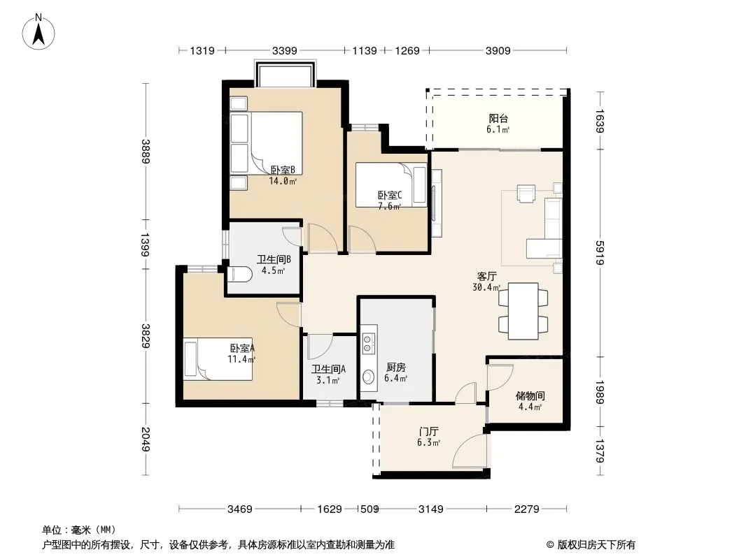 明信仕林府 3室2厅 东南