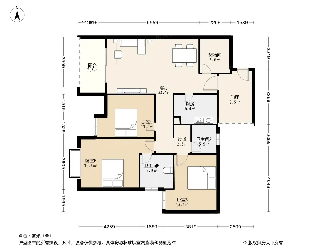 明信仕林府 3室2厅 南 西