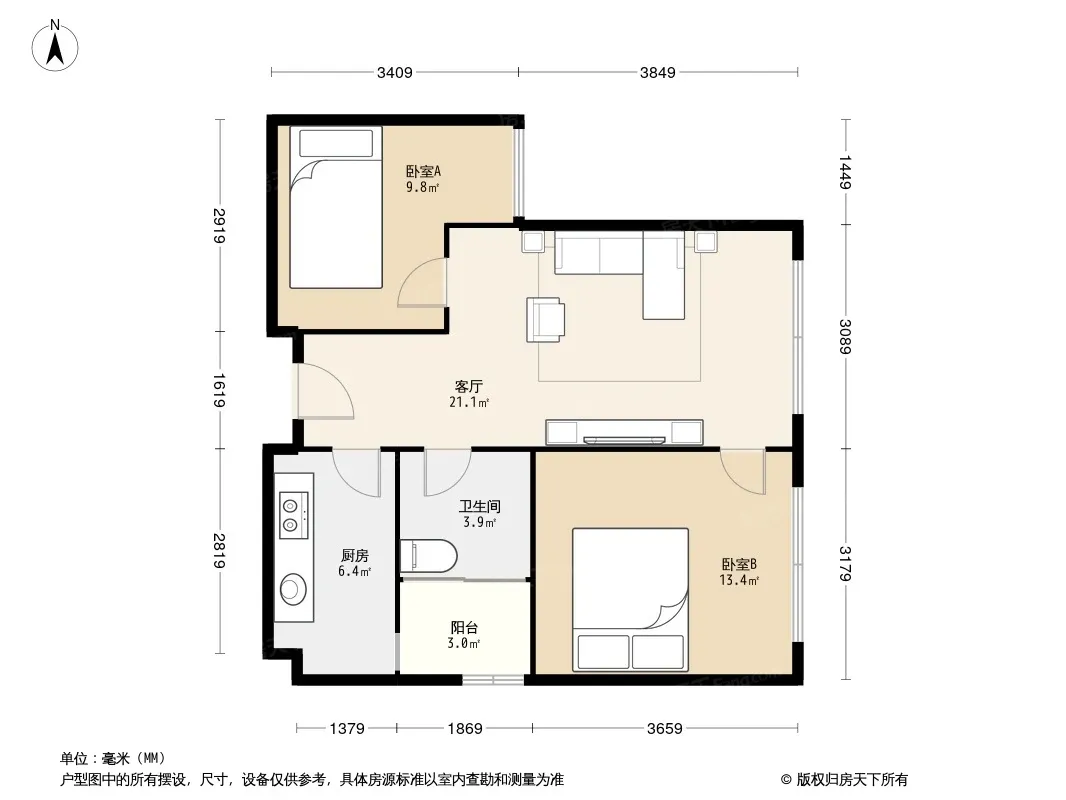 户型齐全,主打户型方正,明卫三居
