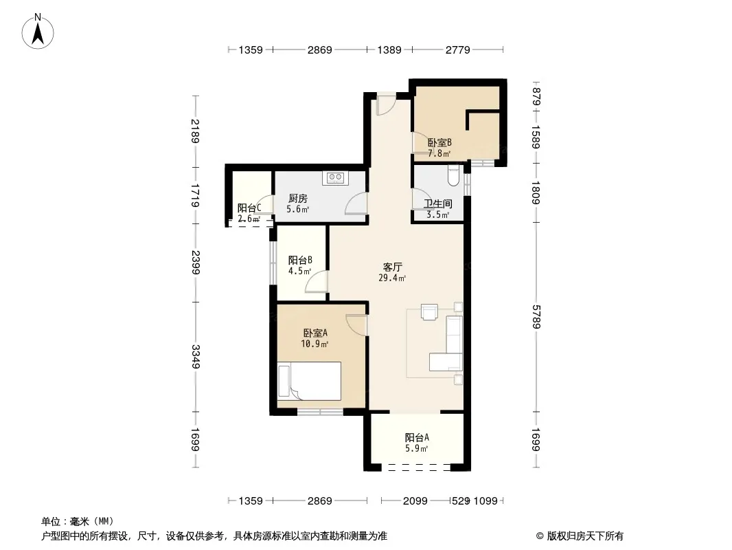 户型齐全,主打户型方正,明卫三居