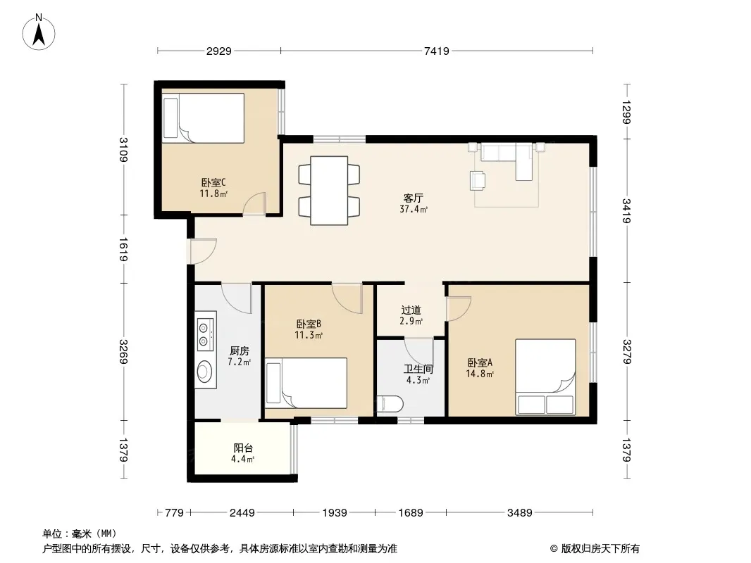 户型齐全,主打户型方正,明卫三居