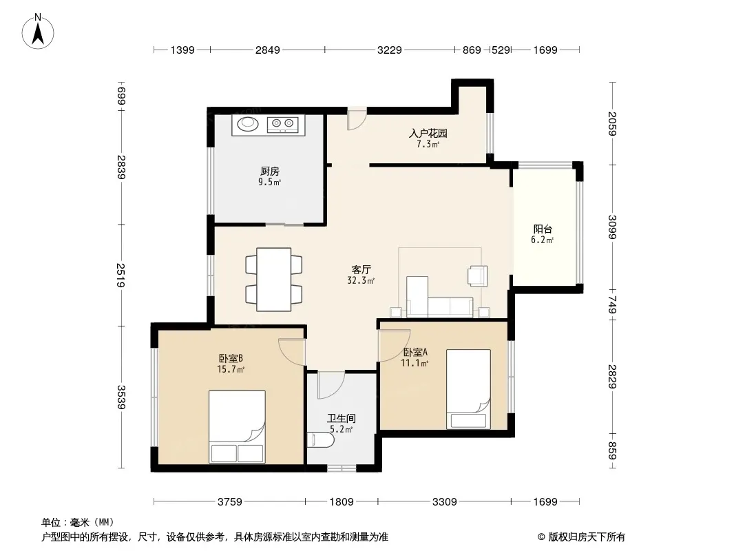 户型齐全,主打南北通透,户型方正三居