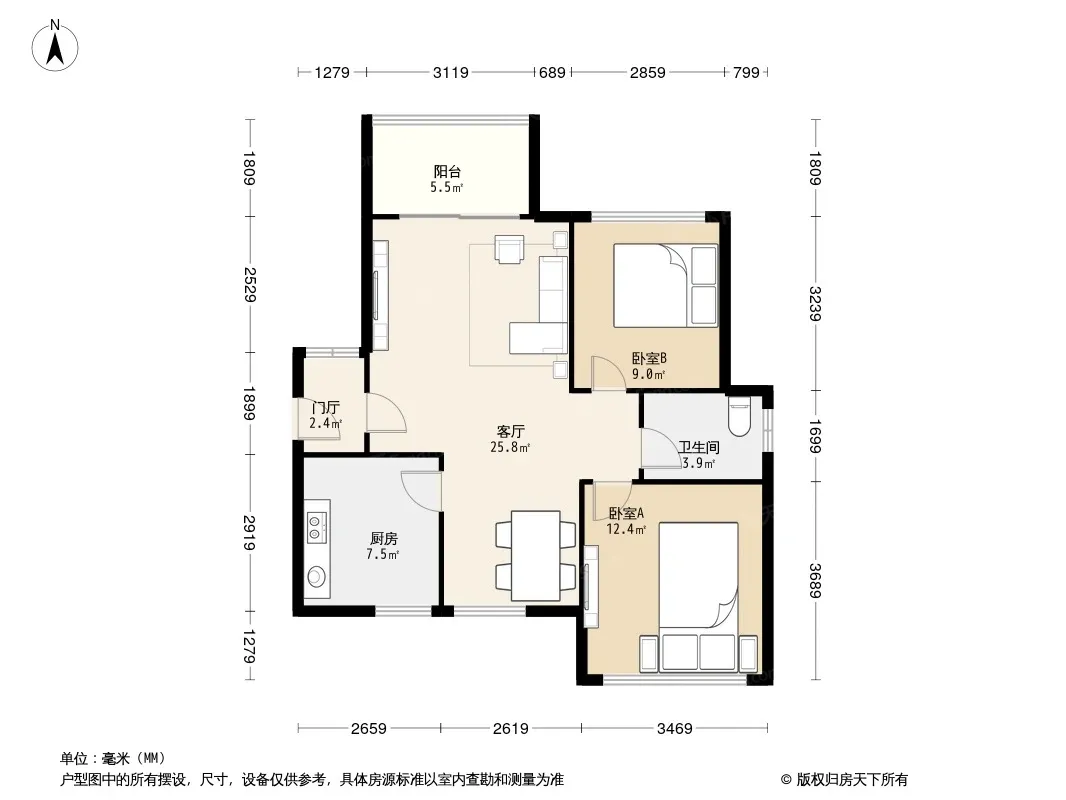 户型齐全,主打南北通透,户型方正三居