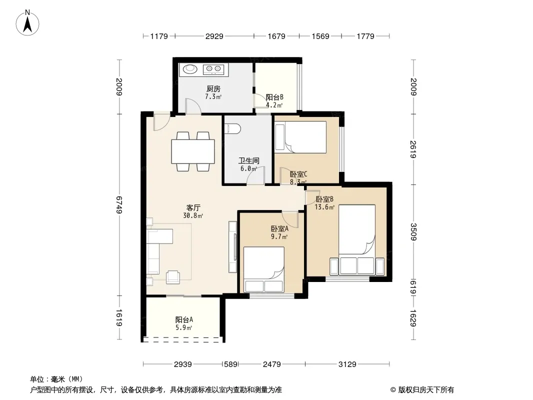 户型齐全,主打南北通透,户型方正三居