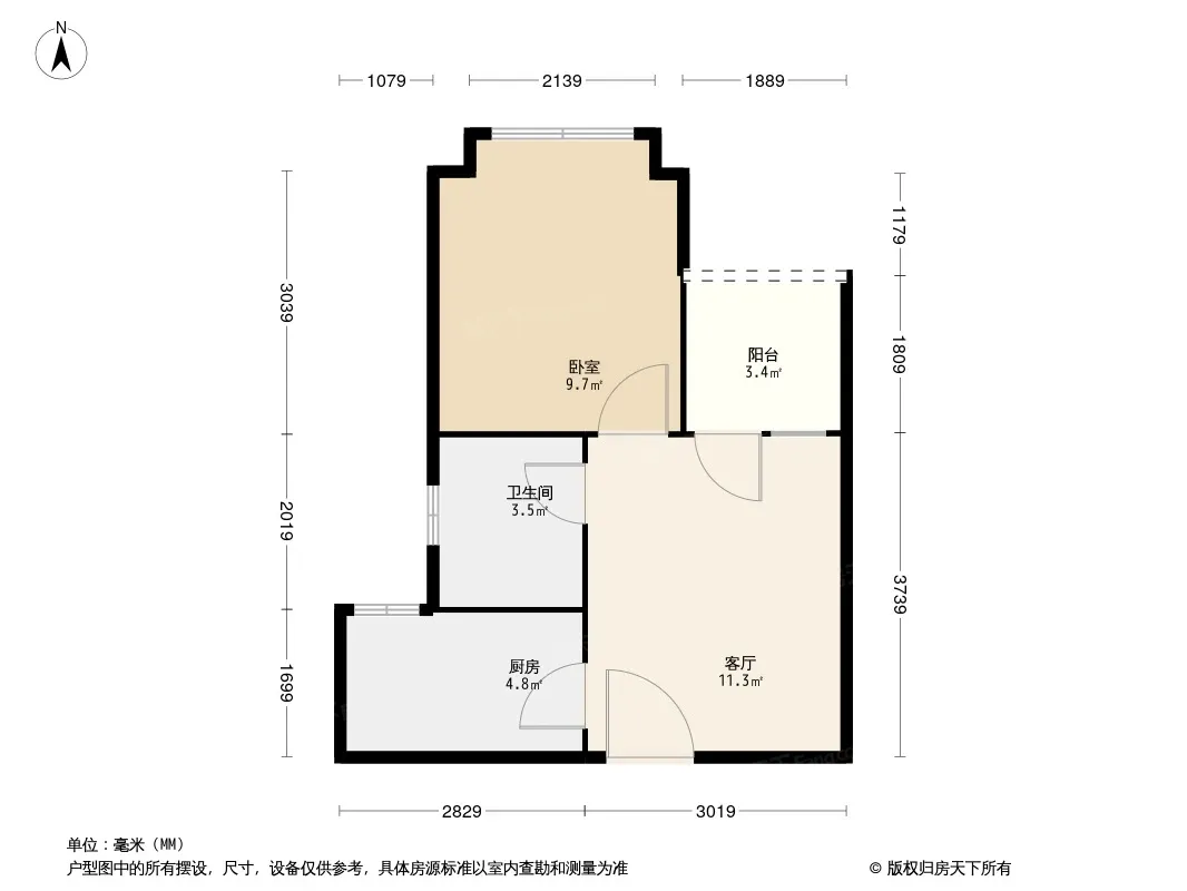 户型齐全,主打明卫,明厨,客厅朝南,全明格局一居