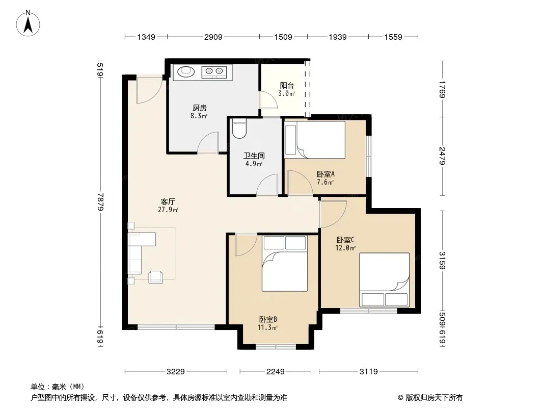 *获取完整户型报告,同时会有免费语音讲解服务