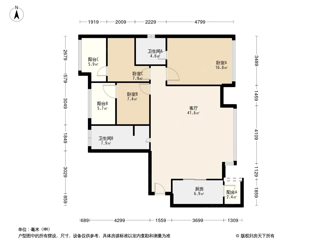 户型齐全,主打客厅朝南三居
