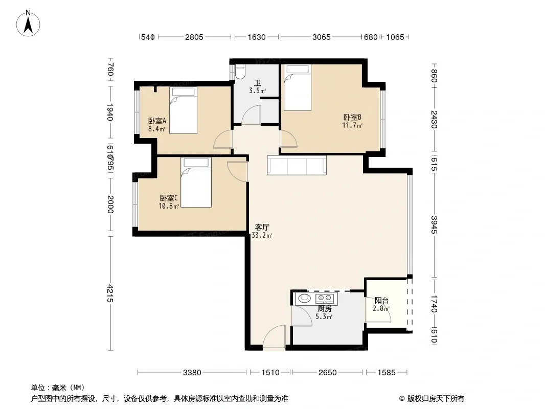 户型齐全,主打明卫,明厨三居