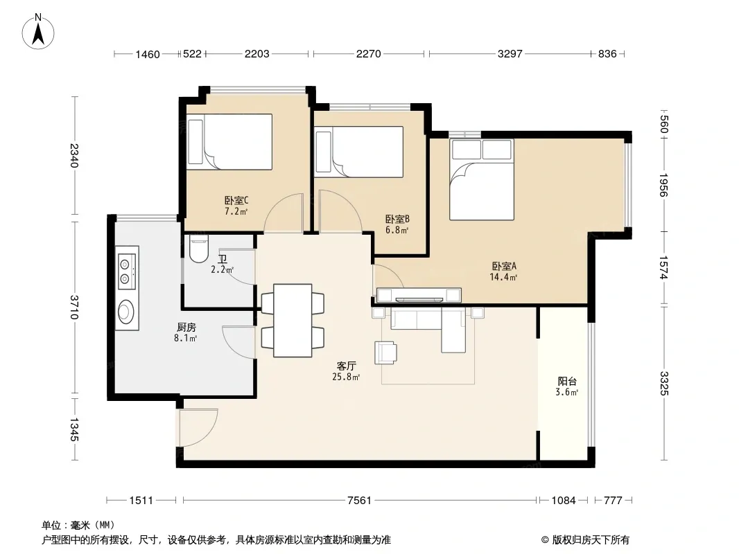 户型齐全,主打明厨三居