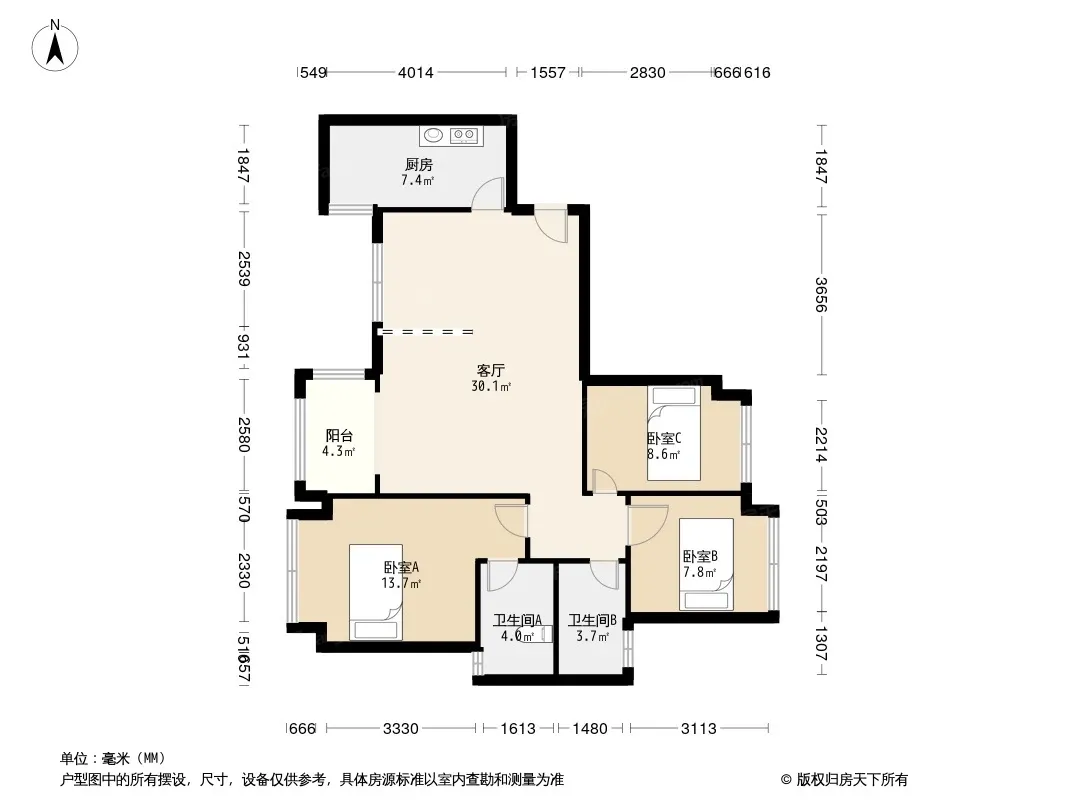 *获取完整户型报告,同时会有免费语音讲解服务