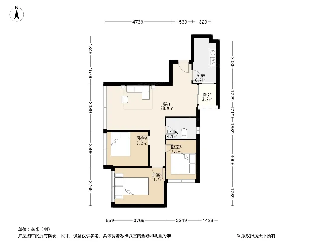 户型齐全,主打户型方正,主卧朝南三居