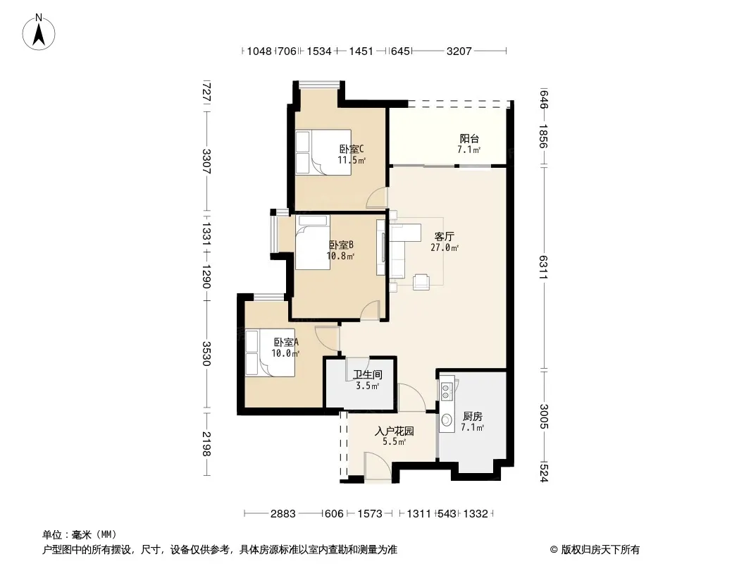 户型齐全,主打独立衣帽间,明卫,明厨,客厅朝南,全明格局三居
