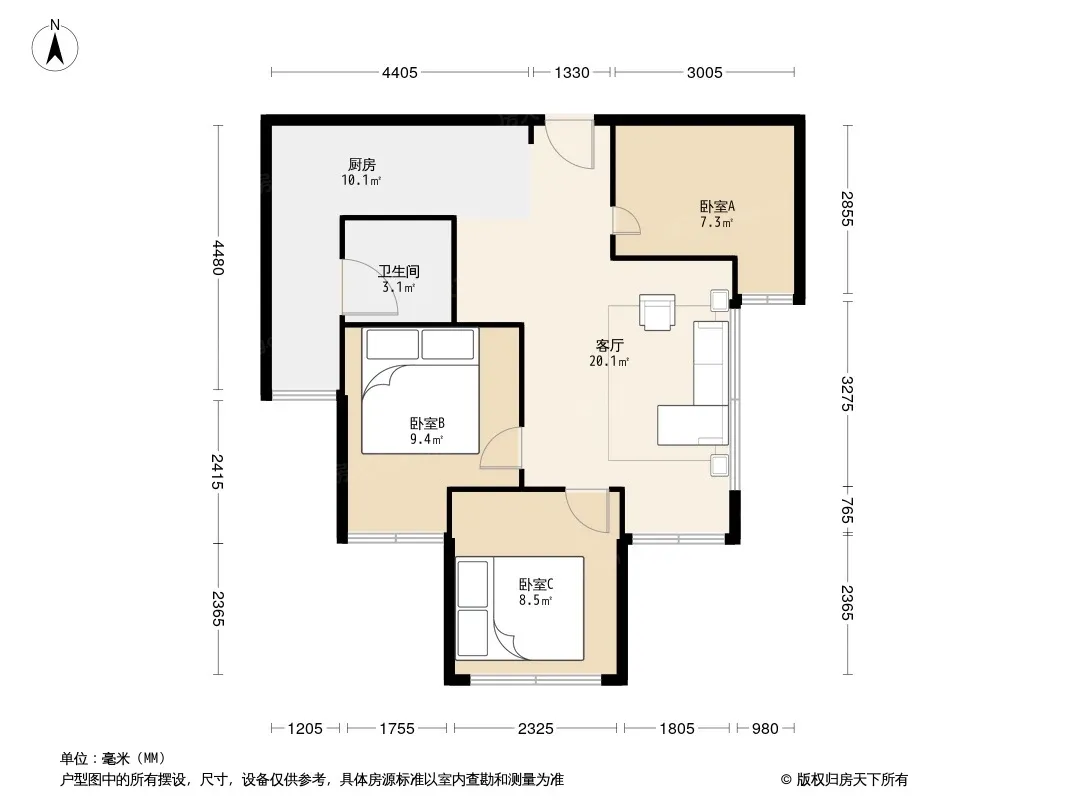 蓝光乐彩城二期 3室1厅 东南