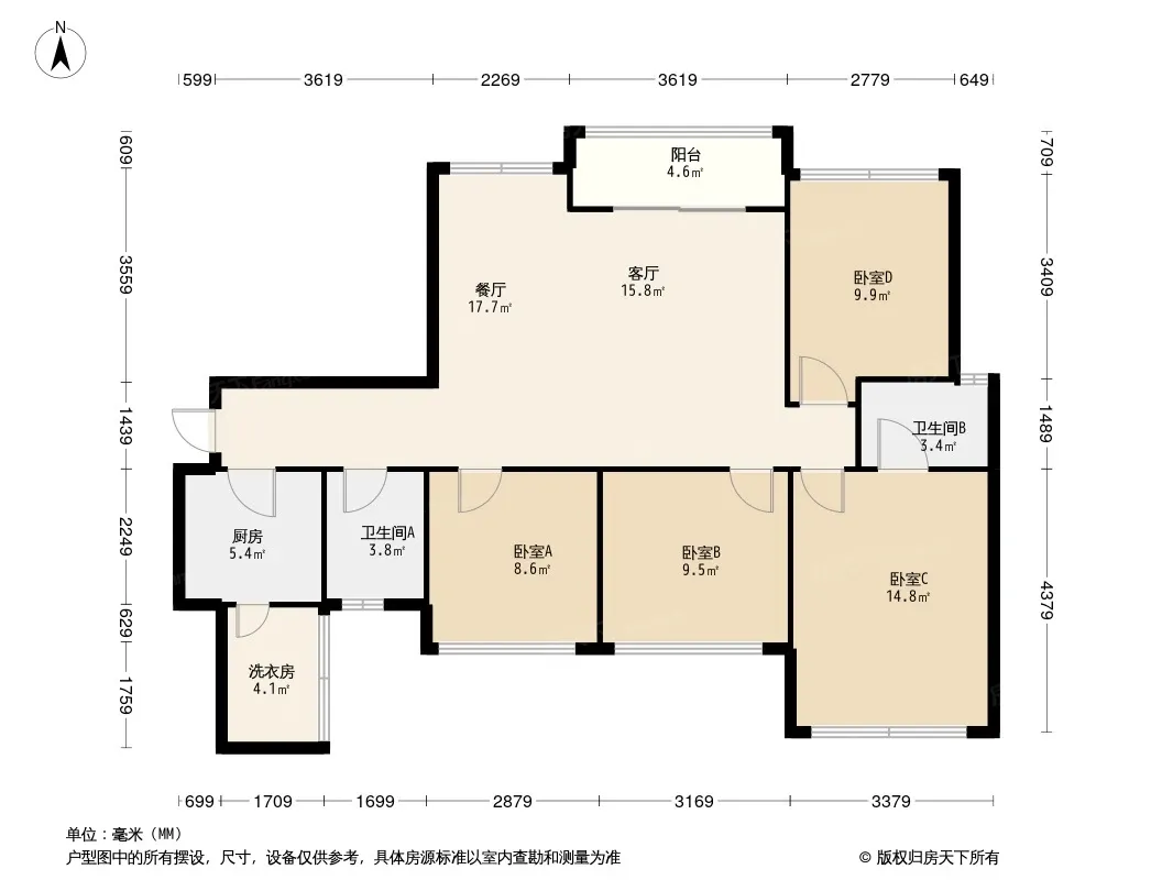 户型齐全,主打明卫,双阳台三居
