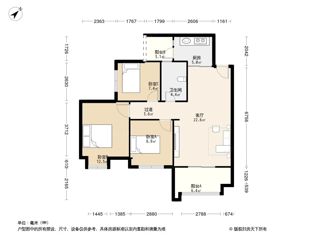 户型齐全,主打双阳台三居