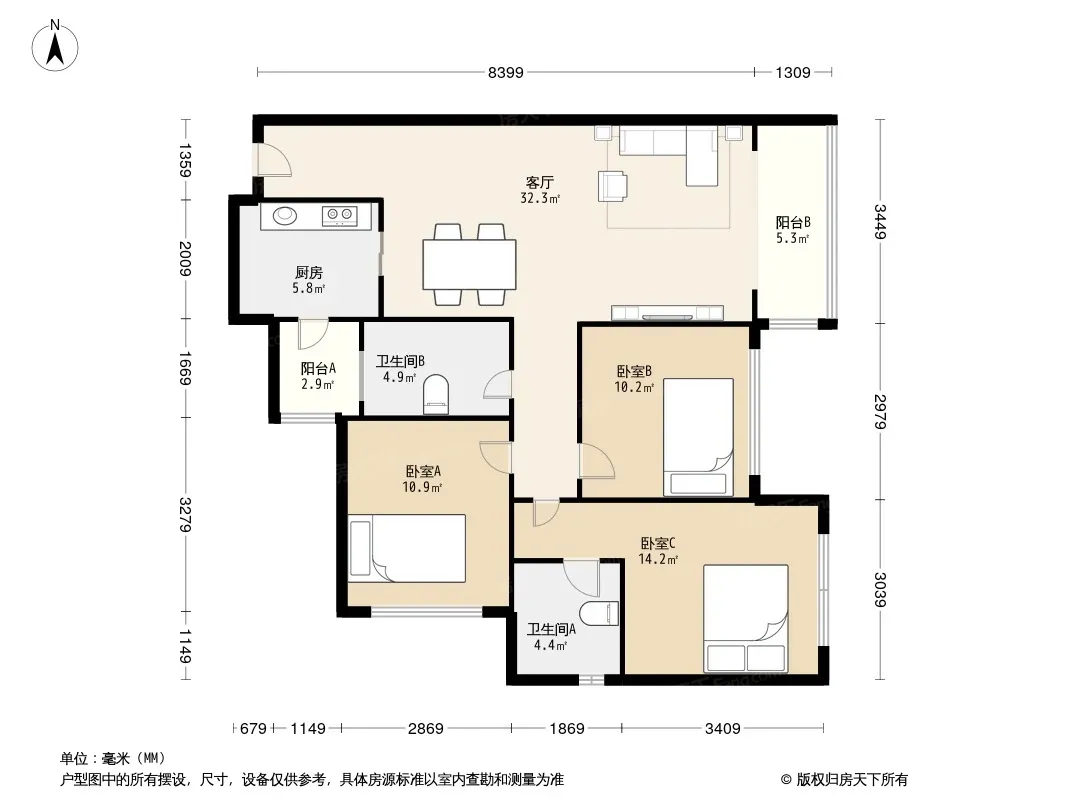 户型齐全,主打户型方正,明厨三居