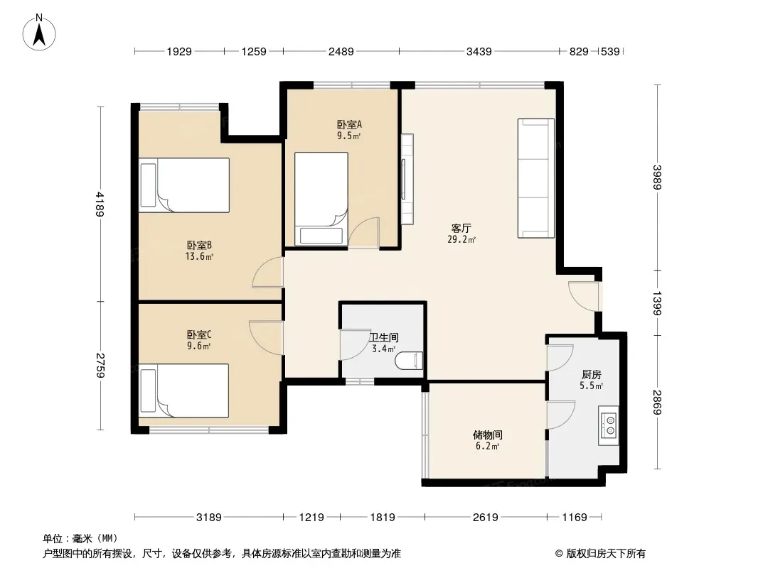 嘉祥瑞庭南城 3室1厅 北