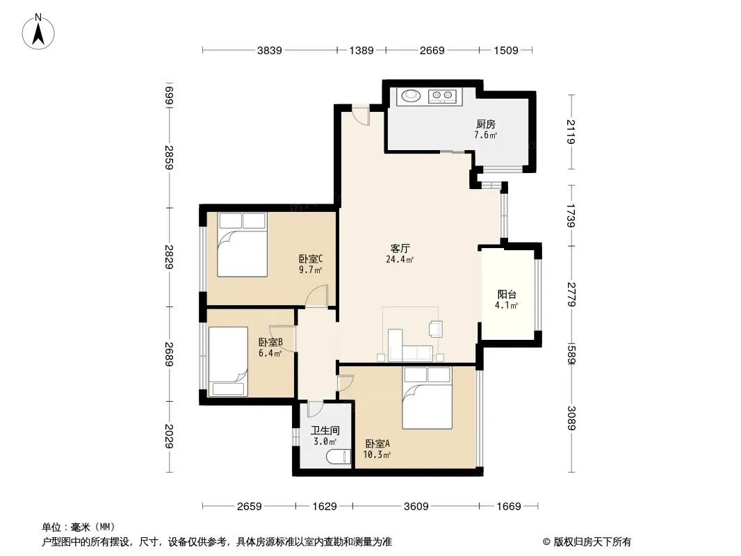 嘉通云玺 3室2厅 东南 南