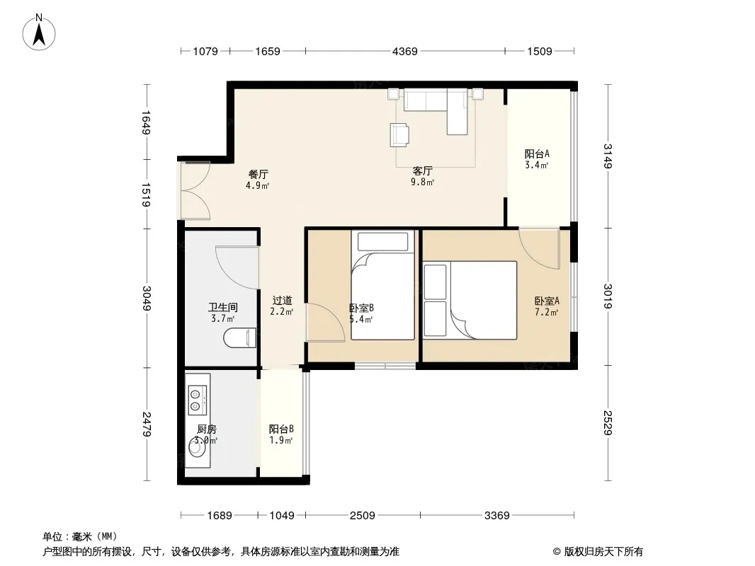 中德英伦联邦A区 2室1厅 东北