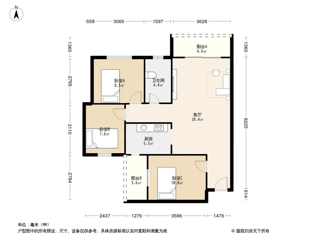 玖度阳光 3室1厅 东南