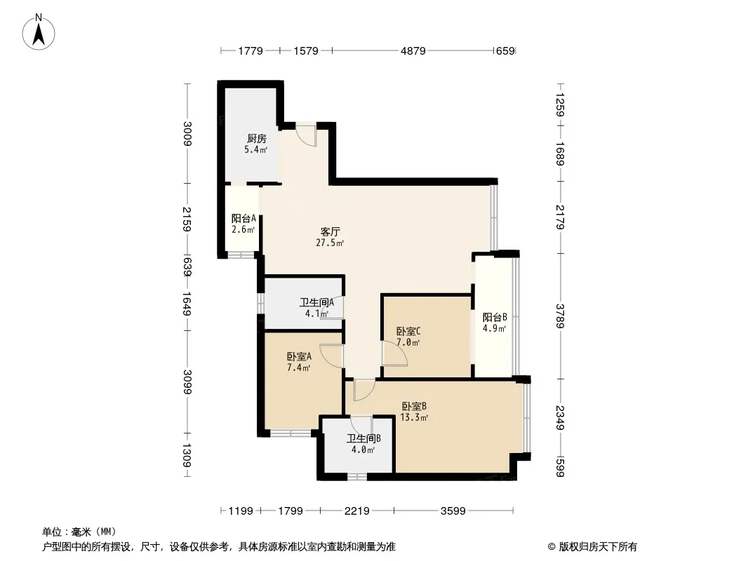 户型齐全,主打客厅朝南三居