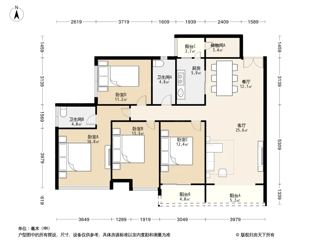 中德英伦联邦B区 4室2厅 东南