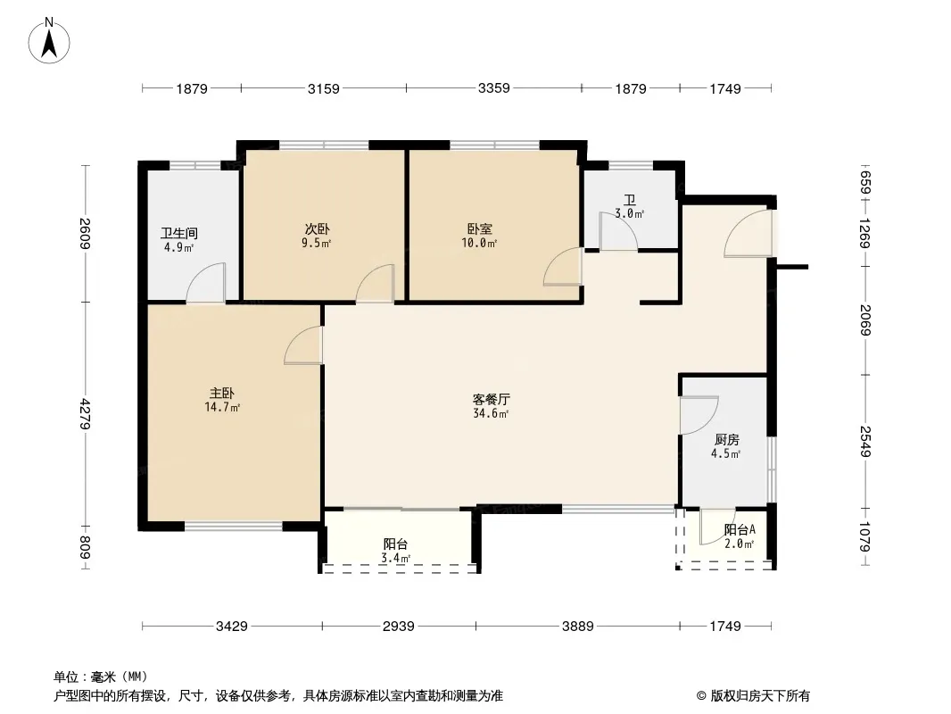 户型齐全,主打户型方正,动静分离,主卧带卫,带衣帽间四居