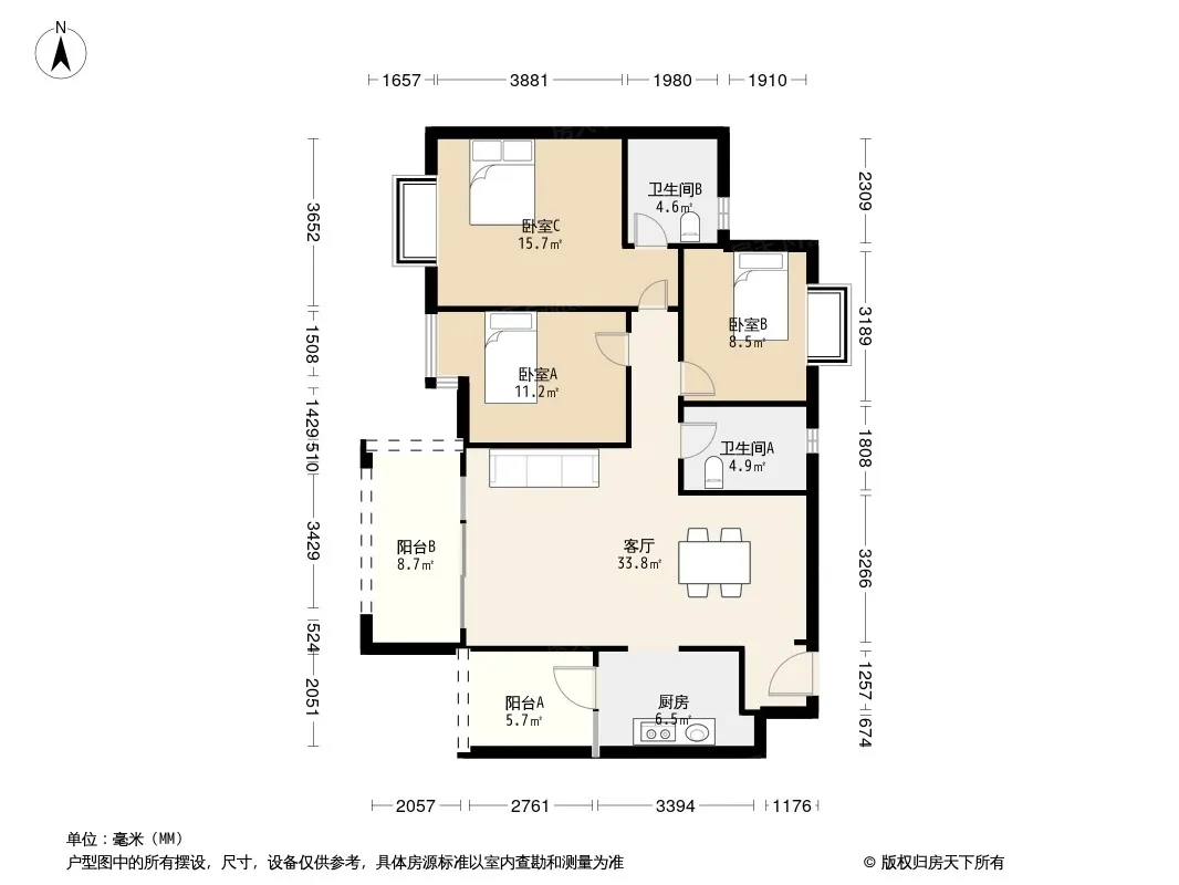 户型齐全,主打明厨,明卫,客厅朝南,全明格局,双阳台,双卧朝南三居